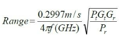 在上面的转换公式中:通信距离等于发射和接收天线间的距离(米),Pr=接收功率,Pt=发射功率,Gt=天线发射增益,Gr=接收天线增益。