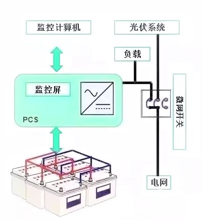 离网运行也称孤岛运行,是指在电网故障或计划需要时,与主网配电系统断开,由DG、储能装置和负荷构成的运行方式。储能变流器PCS工作于离网运行模式为微网负荷继续供电,光伏系统因母线恢复供电而继续发电,储能系统通常只向负载供电。