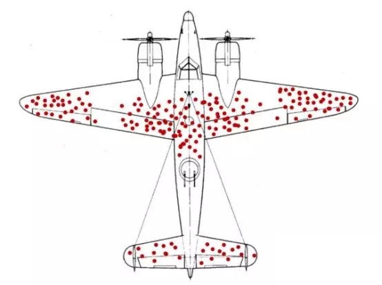 在二战时期,英国在与德国的空战中损失了不少轰炸机和飞行员。为了降低损失,英国军部考虑给轰炸机装上更厚的装甲,从而提高飞机的防御性能。但增加装甲却会大幅增加轰炸机的重量,影响其整体性能,因此研究人员需要做出选择,只在飞机最易受到攻击的地方加上装甲。