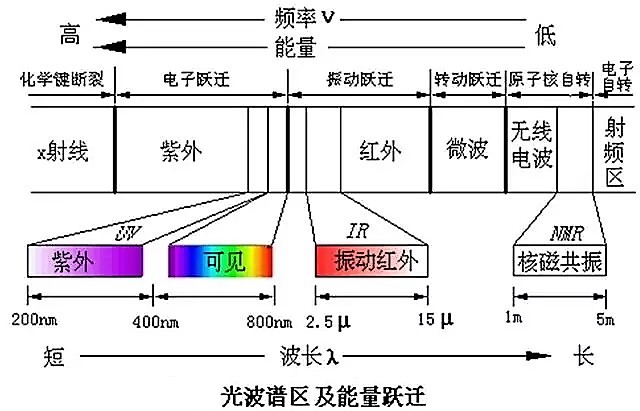 红外线其实和可见光一样都是电磁波,红外光又可依据波长范围分成近红外、中红外和远红外三个波区,其中中红外区(2.5~25μm;4000~400cm-1)能反映分子内部所进行的各种物理过程以及分子结构方面的特征,对解决分子结构和化学组成中的各种问题最为有效,因而中红外区是红外光谱中应用最广的区域。