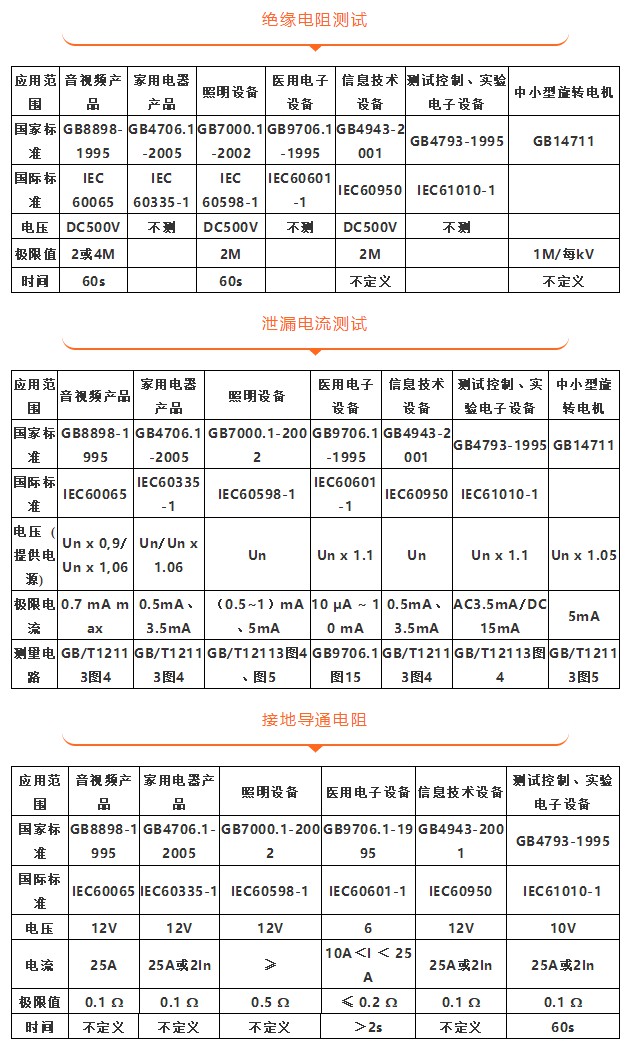 但由于各种电子产品的形式不同,其对应的安规标准和安规测试要求也有所不同,天纵检测(SKYLABS)这里分享一个别人总结的常见电子电器产品安规标准的速查表,具体如下: