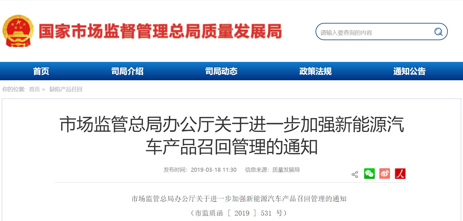 天纵鉴定(SKYLABS)注意到市场监管总局在其官方网站上公开发布了“市监质函 [ 2019 ] 531 号”即《市场监管总局办公厅关于进一步加强新能源汽车产品召回管理的通知》。此通知要求加强新能源汽车安全研究,建立新能源汽车火灾事故深度调查分析机制,其制订的主要措施有如下四条: