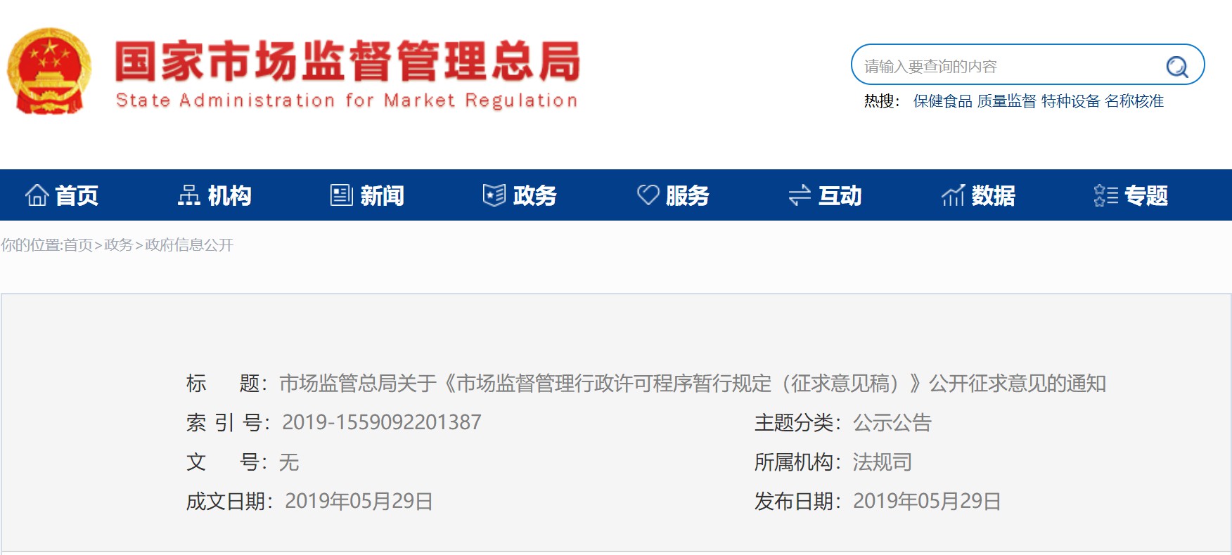 昨日(2019529日)国家市场监管总局在其网站上发布了《市场监督管理行政许可程序暂行规定(征求意见稿)》公开征求意见的通知。天纵鉴定(SKYLABS)特别注意到在这个文件中对设备、设施、产品、物品等进行检验、检测、检疫或者鉴定的事项进行了说明。天纵君个人认为这也是产品质量检验鉴定领域中另一个很有分量的行政许可法规新依据。