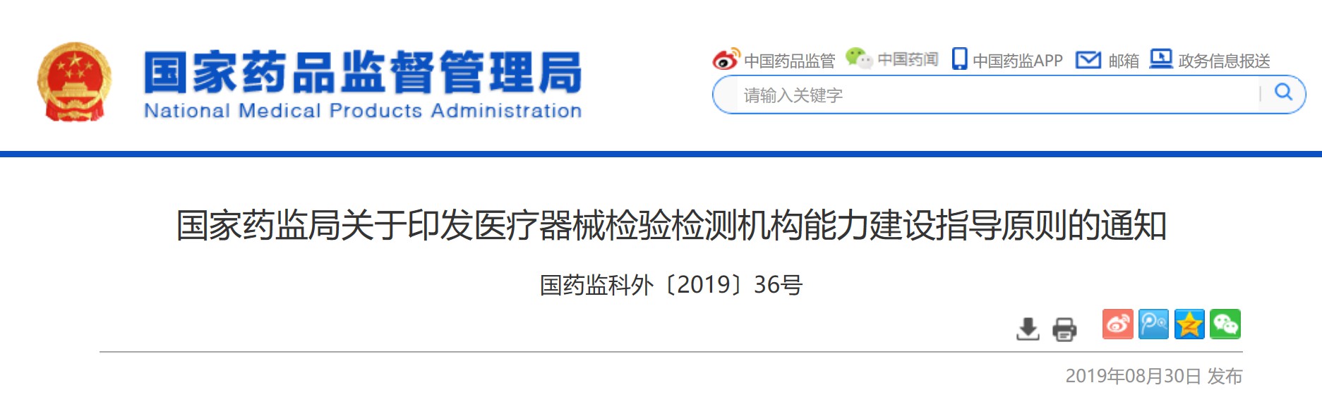 国家药监局发布“医疗器械检验检测机构能力建设指导原则”