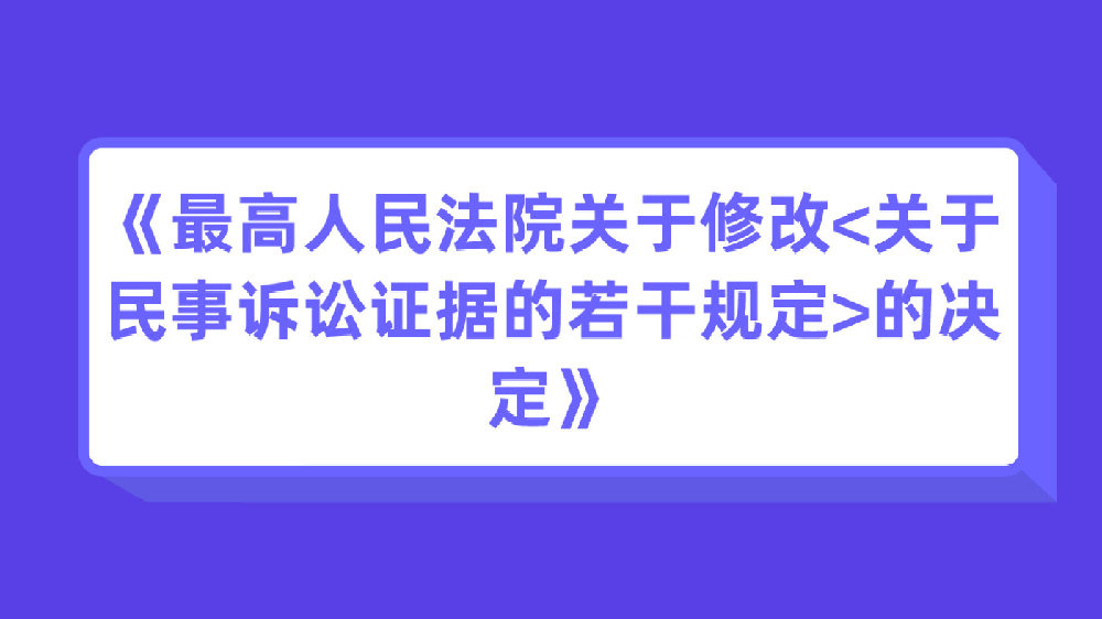2019年12月25日最高人民法院发布了《最高人民法院关于修改<关于民事诉讼证据的若干规定>的决定》。这个决定在2019年10月14日由最高人民法院审判委员会第1777次会议通过,现最高院正式予以公布,该规定将自2020年5月1日起施行。