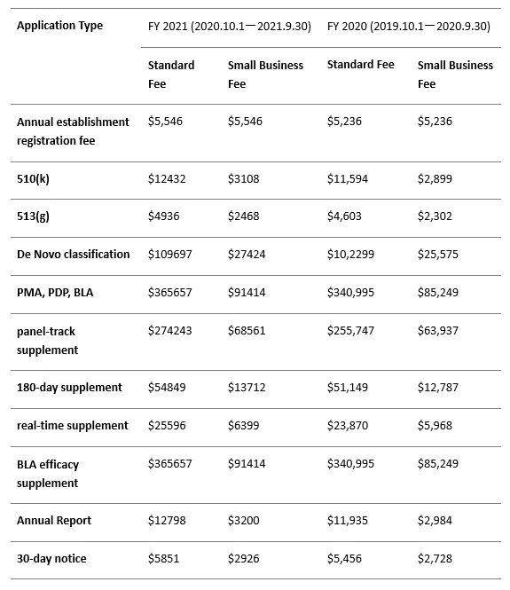 我们知道医疗企业在美国销售新的医疗器械时均被要求进行企业注册和器械列名,因此必须要向美国食品药品监督管理局(FDA)支付一定的认可费用。天纵检测(SKYLABS)最近从FDA官网获悉,日前美国FDA公布了2021财年(2020年10月1日至2021年9月30日)涉及医疗器械部分的官方收费标准。