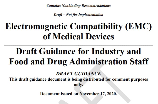 在2020年11月16日美国食品药品监督管理局(FDA)在其网站上公开了《医疗设备的电磁兼容性(EMC)指南草案》草稿版文件,并希望相关业者在2021年1月19日前对此文件提出改进意见。